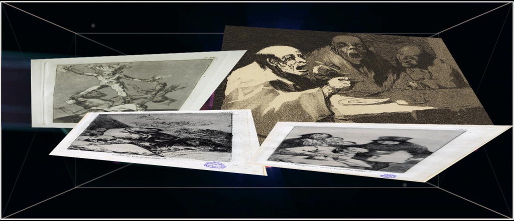 En un intento de borrar o quitar, lo no quitable, lo no borrable, en un intento de suavizar gestos de lo no suavizable, en un intento de doblegar el gesto abrutado, abrupto; y, no llegar ni al intento. El olvido se adueña de cada momento representado por Goya, el pasado es su dueño. Pero el silencio es testigo presente de su existencia, en actos sordos, mudos y ciegos. El futuro acompañará siempre sin aceptación, no habrá presente. Y, realmente, no hay nada que borrar, ni quitar.
